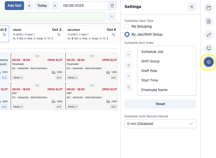 • Click directly on a job or shift group within the schedule to automatically filter by that selection